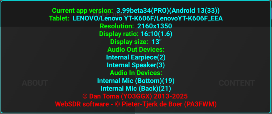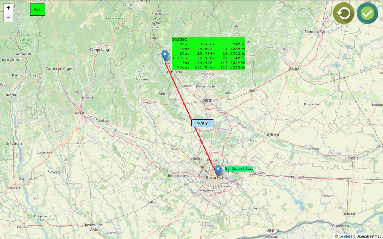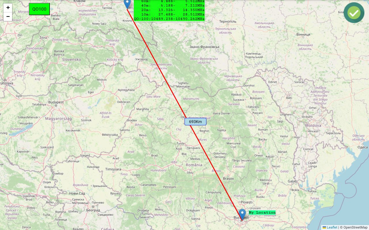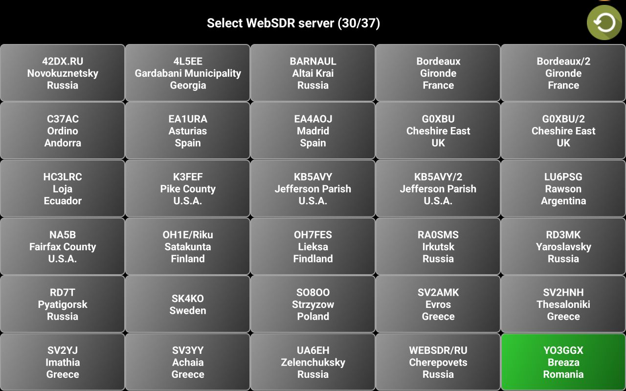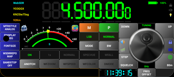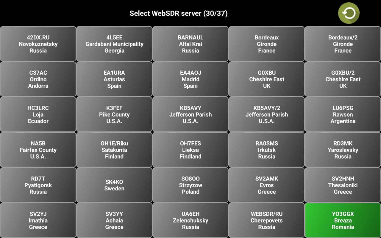 · By using the user’s and the WebSDR server’s geographic coordinates the distance between them is displayed (more details are available if the Location Service in the Android device is activated).