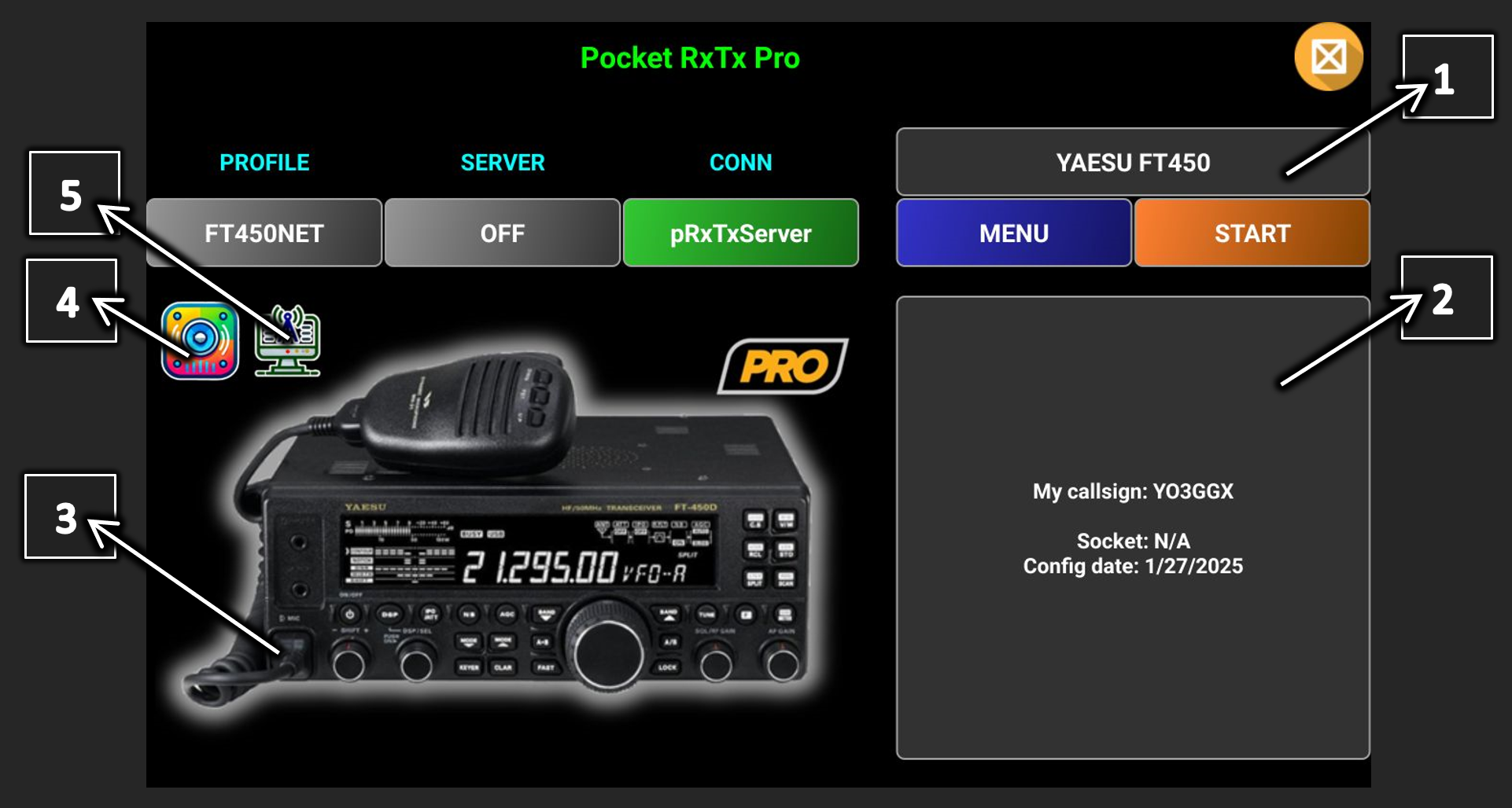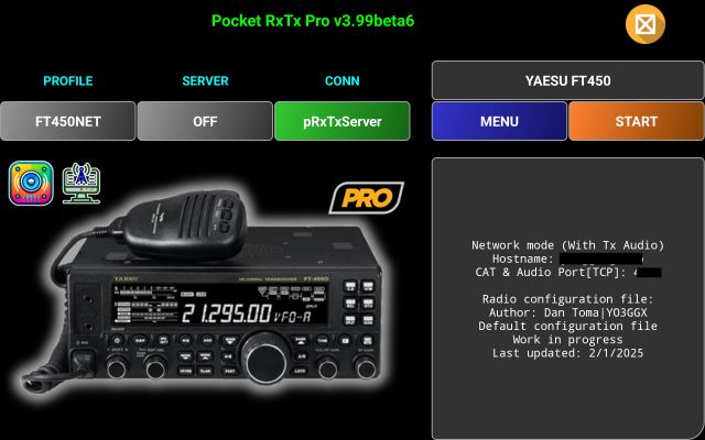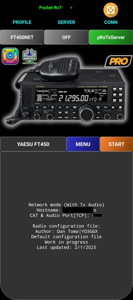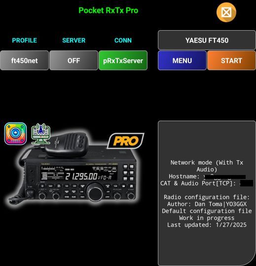 · The application can be used in server mode (PRO version only). IN this way you can use a cheap old Android smartphone as a server instead of pRxTxSrv4 desktop application.