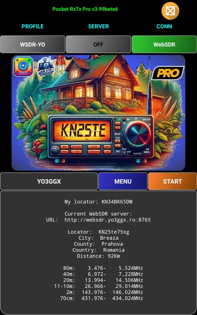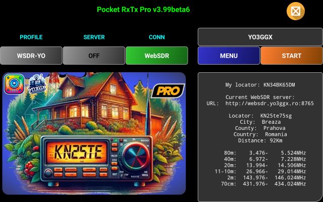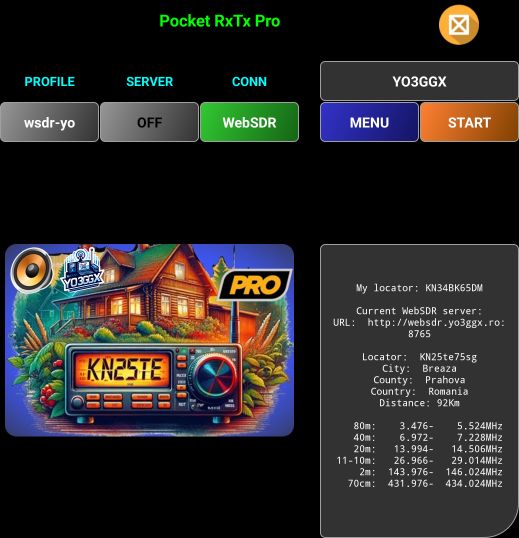 PocketRxTx is an Android only application used to remotely control different Amateur Radio receivers or transceivers. You can connect through the Internet to a WebSDR server or via Bluetooth, USB/Serial or network connection to your own Amateur Radio transceiver.