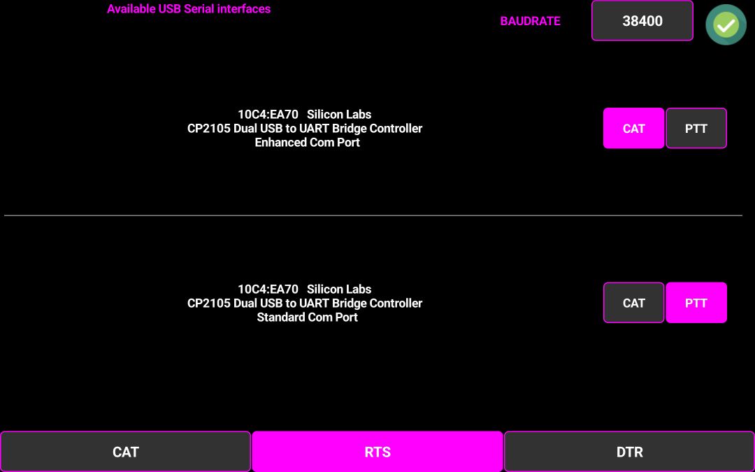 · USB/Serial multi-port interface support. With PTT over CAT, RTS or DTR (user selectable), selectable comms port (e.g. Yaesu FT-991 USB or SCU-17 interface).