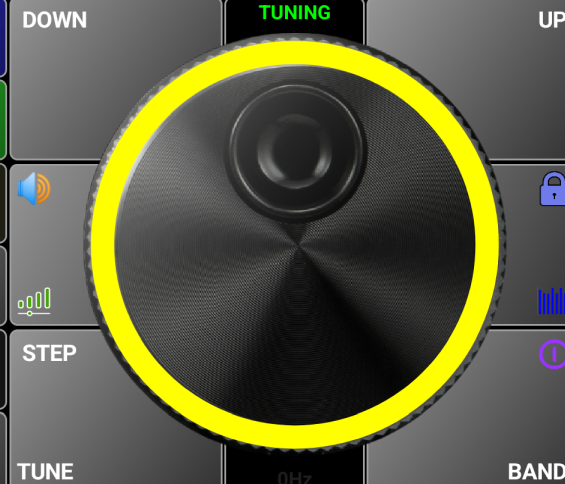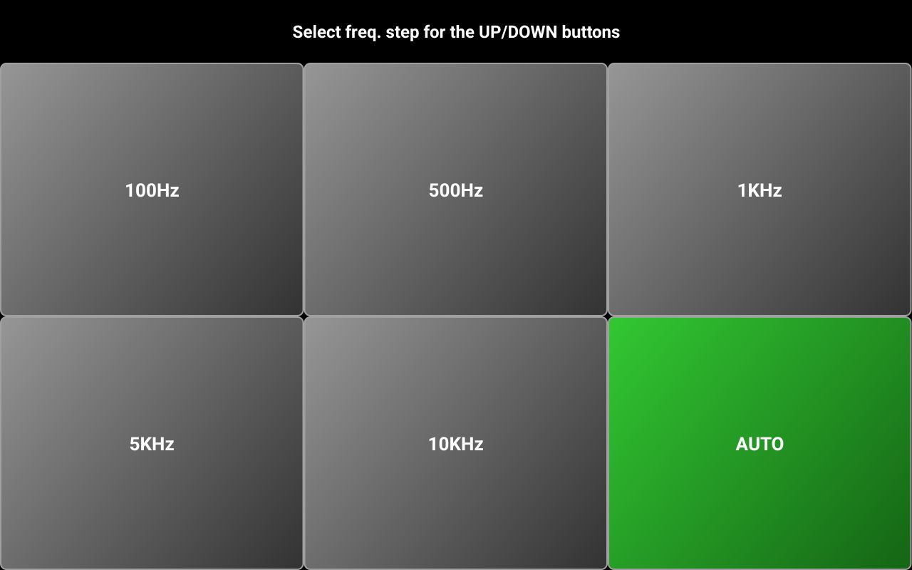 · using Up/Down buttons to change the frequency with a preset step value for (+ and -), which can be dependent upon the selected band.