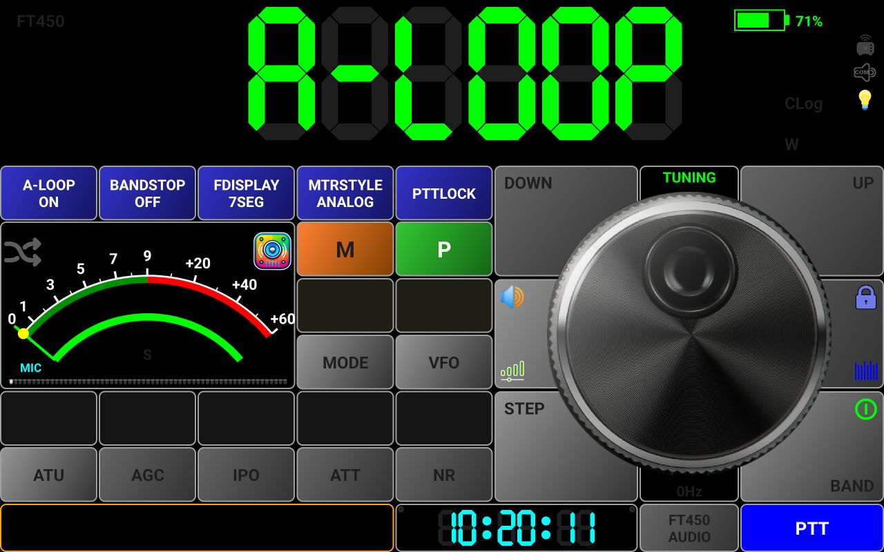 · The Signal strength in receive and SWR/PWR/ALC/MOD/VLT in transmit are displayed using a bargraph or an analog style meter (available in PRO version only). In PWR meter mode, the scale is automatically adjusted based on the maximum power available on the selected transceiver.