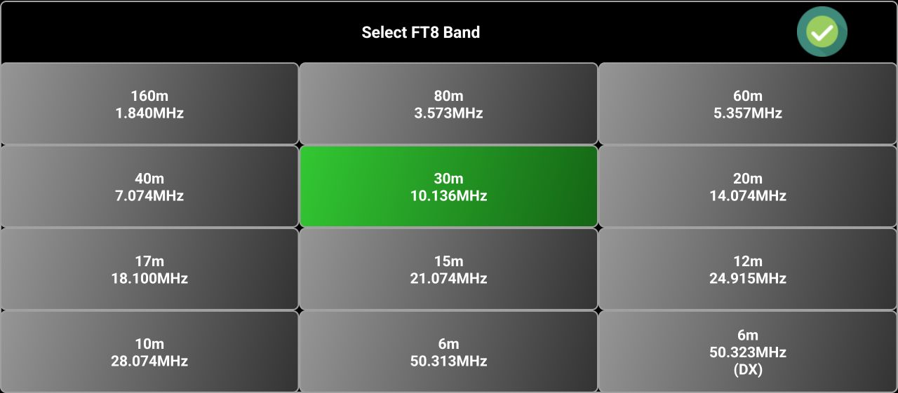 · Bands may be selected from the list of valid ones for the selected transceiver.